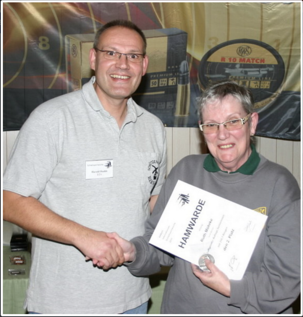 Der Ehrenpreis des Kreises für die beste internationale Leistung wurde an Andrea Kuhlmann vom gastgebenden Schützenverein Hamwarde für ihre Leistung mit dem Zimmerstutzen verliehen.